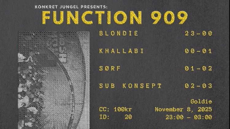 Function 909 er deres neste session. Et mørkt rom bygget for bevegelse, svette og bass som treffer rett i brystet.
